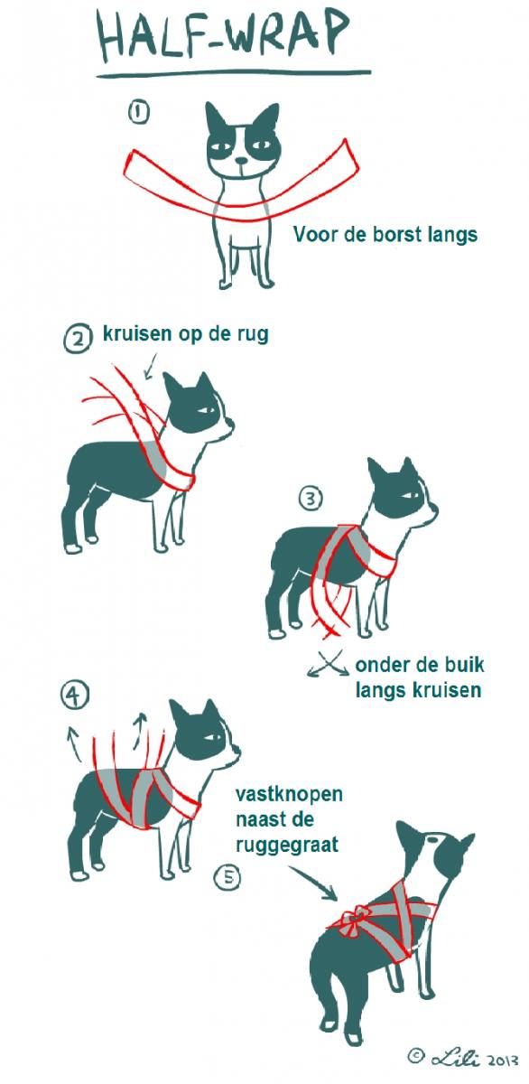 – Een tundershirt of een bandage wrap kan ook kalmerend werken. Oefen dit ook ruim van te voren en breidt het in stapjes uit.